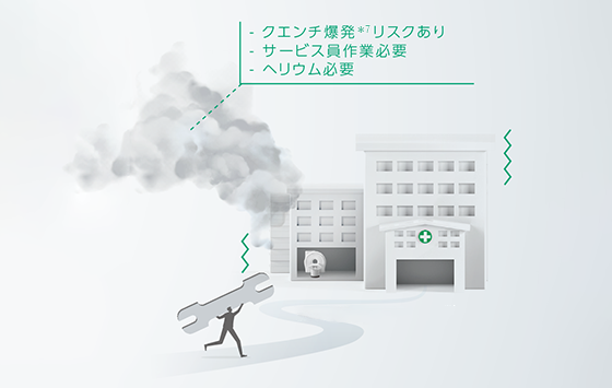 また、ヘリウムの価格変動や供給不安によって入手困難になるケース、ヘリウム起因によるトラブルをZeroにし、安定稼働に貢献します。