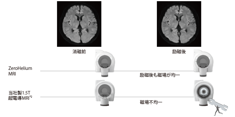 そのため消磁、励磁後サービス員の確認がなくともMRI検査が可能*13となります。