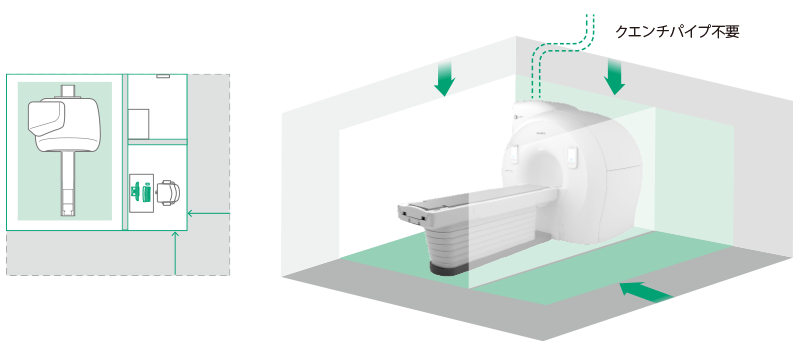 ECHELON Synergy ZeroHeliumはクエンチパイプが不要で、高さ方向の設置の制約が緩和されます。