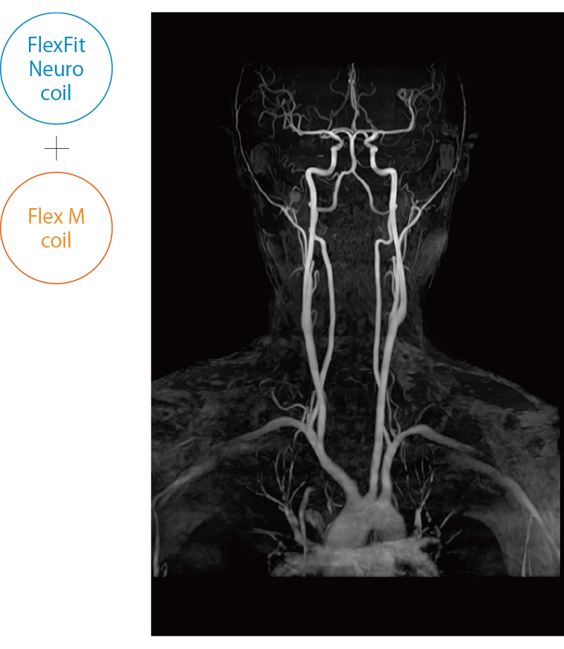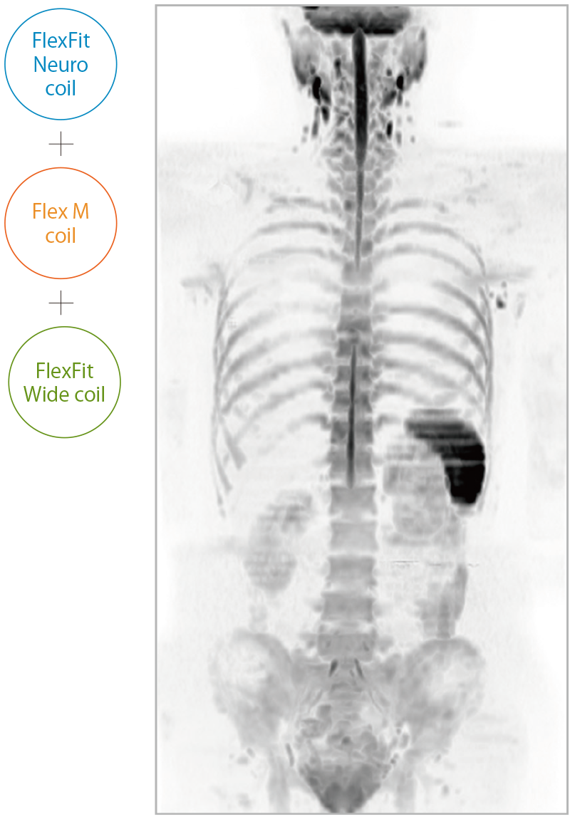 ECHELON Synergy ZeroHeliumはスライド装着でOneアクションセッティング可能なフレキシブル頭頸部用コイルや、撮りたい場所をフレキシブルにワイドにカバーできるFlexコイルを備え、部位に応じて柔軟に対応できます。