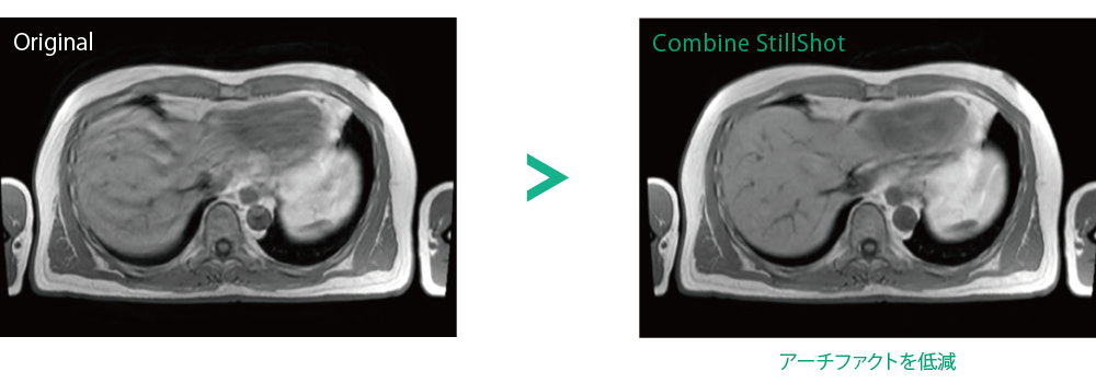 被検者によるエマージェンシーコールなどでスキャンの中断を余儀なくされても、必要最小限の撮像データが得られていれば、それらを用いて画像を再構成することが可能。被検者の負荷を軽減するとともに、診療業務の円滑化に貢献します。
