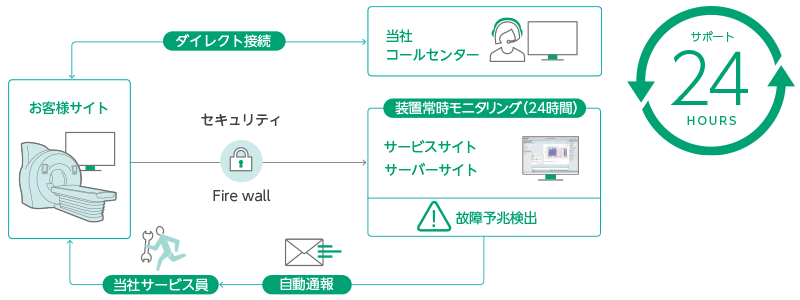 蓄積を重ねた装置稼働状況などを中心としたビッグデータの分析と富士フイルムの「故障予兆診断サービス」を活用して開発した超電導MRI装置向けの故障予兆診断サービス。