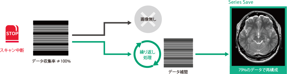 検査を中断しても必要最小限のデータであとから再構成で救済