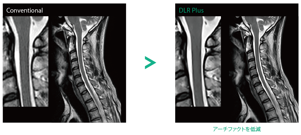 IP-RAPID×DLR PlusはVolumeScanやRadialScan、HalfScanといった基本撮像に加え、MultiContrastScanのFatSepやDWIなど多くの撮像法でお使いいただけます。広範囲DWIやWhole Spine撮像など時間のかかるWide Scanにも併用でき、多くの部位で従来よりも詳細な情報を得ることができます。