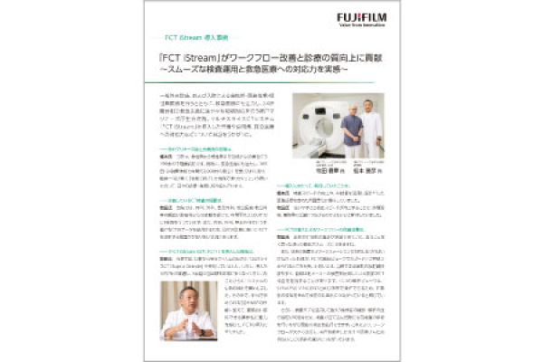 CT検査数の増加や多様な検査要望に対応する臨床現場に、AI技術を活用した画像処理とワークフローで診断をサポートする64列/128スライスCT「FCT iStream」のカタログ。