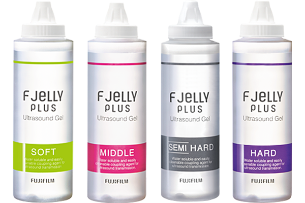 粘度のタイプはソフト、ミドル、セミハード、ハードの4種類を用意。検査部位や体位に合わせて使い分けることができます。特にハードタイプは、一般的な高粘度タイプ*1に比べて粘度が2割高く、体表面での高い密着性やクッション性を実現します。