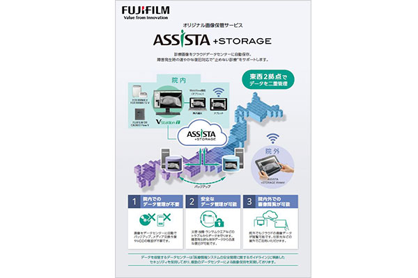 画像診断ワークステーション「V Station T」内のオリジナル画像を保管するクラウドサービス「ASSISTA+STORAGE」のカタログ。