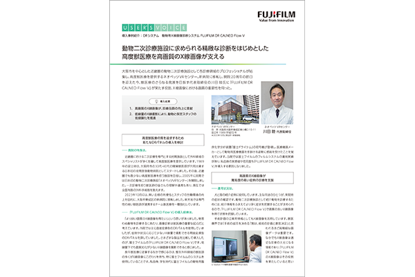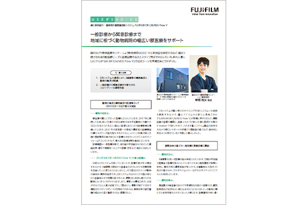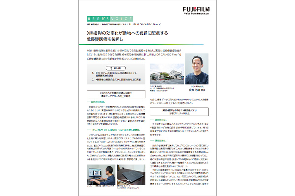 スムーズなワークフローで高画質・低線量の撮影を実現する動物病院向けカセッテDRシステム「FUJIFILM DR CALNEO Flow V」のカタログ。
