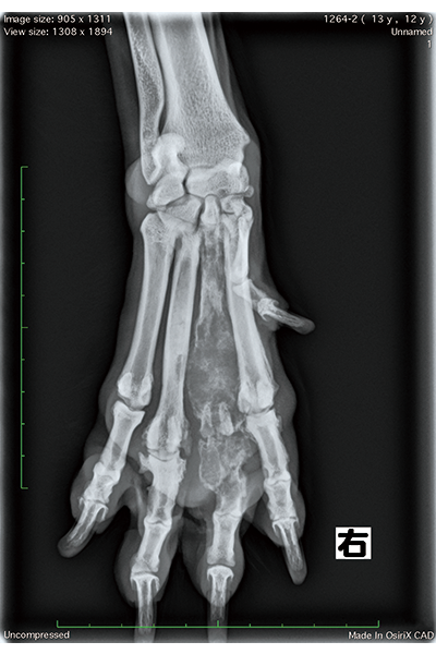 【CASE 1】X線検査にて右前脚第三指に抽出されたマス病変