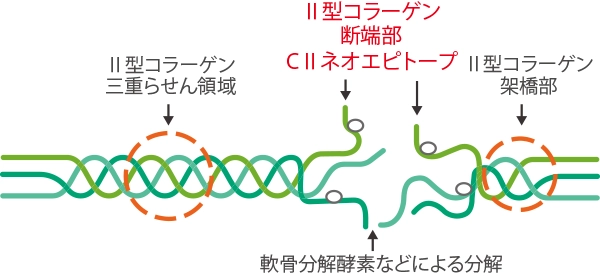(図1)Ⅱ型コラーゲンの構造とCⅡネオエピトープ