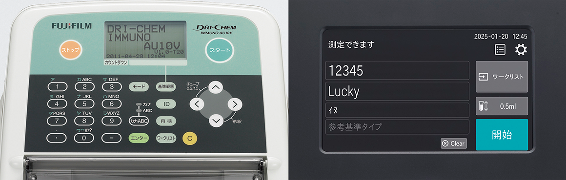 そもそも富士フイルムの動物用免疫反応測定装置は、生化学を測定するための動物用臨床化学分析装置*1のセット利用を念頭に置いて開発されているため、インターフェースやユーザビリティの統一は重要な要素の一つです。そのため今回は、メニューの遷移や設定の仕方といった細かい部分を揃えるだけではなく、並べて置いたときの統一感も意識し、見た目も進化させています。