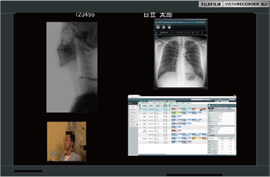 複数の情報を1画面上で録画・観察でき、煩わしい編集作業から解放されます。PICTURE in PICTURE(画面の中に別の画面をはめ込む表示法)のフォーマット・マスク挿入位置・トリミング位置などを透視システムの部位情報に事前設定。院内教育や学会発表をされる先生のことを考えて企画・開発した、忙しい先生のための「時短ソリューション」。