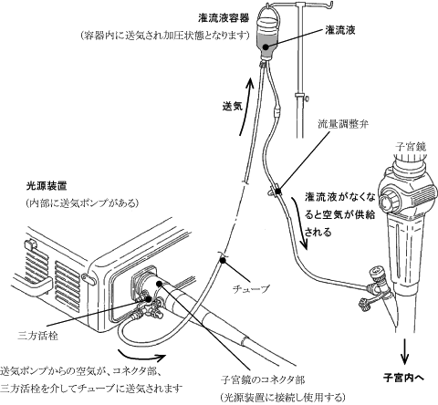 当該製品は検査中の視野を確保しやすくするために、加圧により潅流液を子宮内に供給する機能を有しております。しかし、潅流液がなくなったことに気がつかずそのまま使用すると子宮内に空気が送り込まれ、空気塞栓を生じるおそれがあることから、平成11年および平成13年に当該製品を所有する医療機関へ使用上の注意を喚起する通知書を送付しました。このたび、さらに万全を期すため使用上の注意を喚起する通知書を再送付し、加圧式潅流機能を有している製品を自主回収することといたしました。