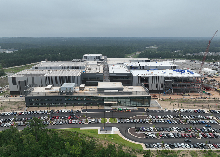 米国新拠点は、拠点間の迅速な技術移管、高い品質の確保、ならびに建設のリードタイムの短縮を実現するために、高い生産性と各種認証取得実績があるデンマーク拠点と設計・設備・品質管理システムを共通化するアプローチ(kojoX™(コ―ジョーエックス))で建設を進めています。総額32億ドルを投資して建設を進めている本拠点では、原薬製造に加え、製剤の受託も可能であり、2026年には包装工程まで含めた一貫した受託体制が整います。現在680名の従業員が勤務しており、2031年までに計1,400名を雇用する計画です。
