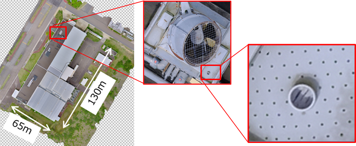 地上から45mの上空から撮影した426枚の高解像画像を3次元モデル生成することで施設全体を高精細に確認可能。