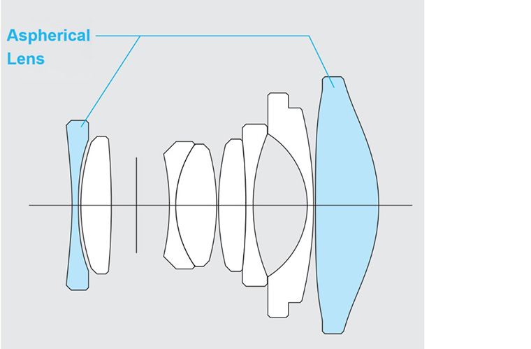 - The lens features 8-element in 6 groups lens including two aspherical lenses. This design minimizes aberrations from the center to the edges, delivering high-resolution image quality.