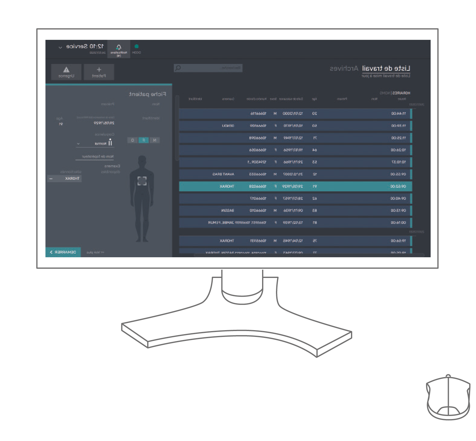 Simply click on the patient's name in the Worklist to automatically select all the exam parameters, such as generator constants, table position, additional filtration and collimation.