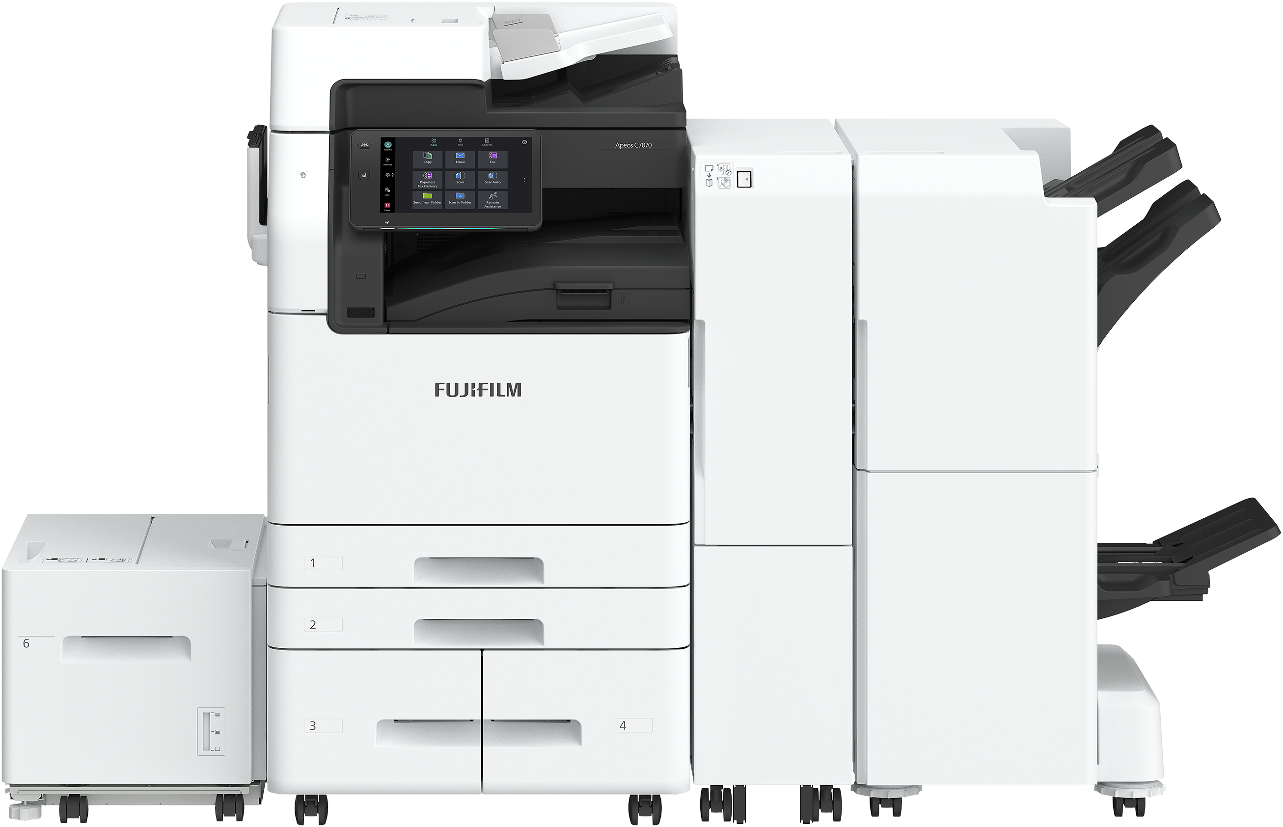 ApeosC7070 with Side Tray,High Capacity Feeder B1,Finisher‐C4C5 with Booklet Maker,Folder Unit CD3