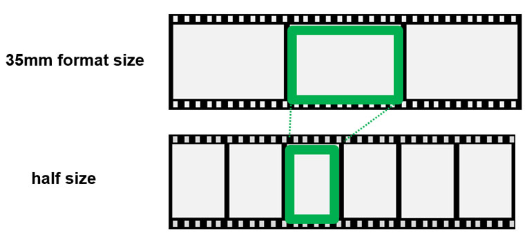 - *1 A camera that shoots two frames of 35mm film at approximately half size (18 x 24mm).