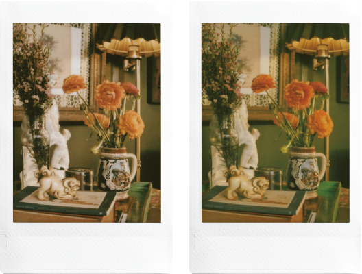 instax-Natural Mode™ (Left) , instax-Rich Mode™ (Right)