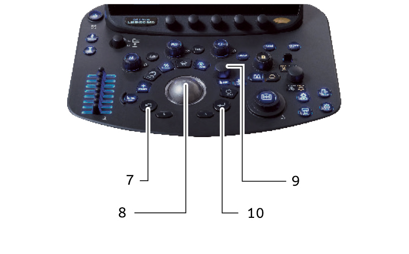 The freeze button is located close to the trackball thereby bringing basic console operations together. Additionally, the core 5-switch arrangement around the trackball streamlines the workflow for intuitive performance of more advanced functions such as Cardiac 3D and cardiac function analysis.