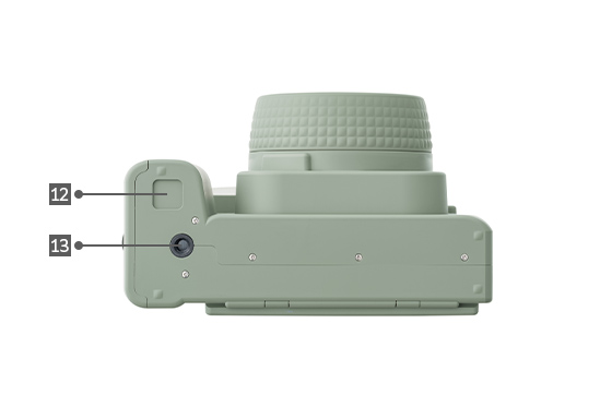 Film counter, film cartridge confirmation window, tripod socket (tripod sold separately).