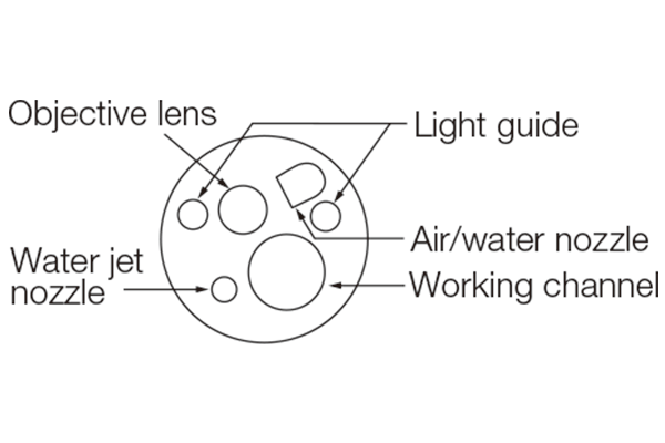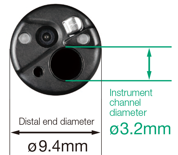 While keeping the instrument channel diameter of 3.2mm for a wide range of procedures such as hemostasis and balloon dilation, added a water jet function. Since it can wash away mucus and blood adhering on the mucous membranes, the scope's field of view can be cleaned promptly. It is expected to be a smooth observation and treatment.
