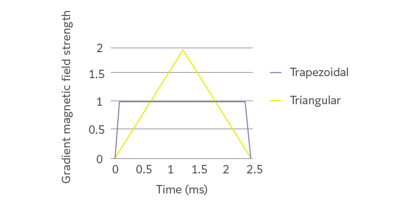 Changing the waveform of the gradient magnetic field changes the frequency characteristics.