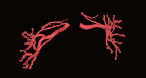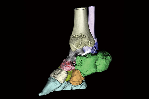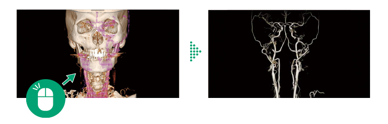 Bones are extracted or removed with one click based on the CT value and the shape of the region of interest recognized by REiLI technology.