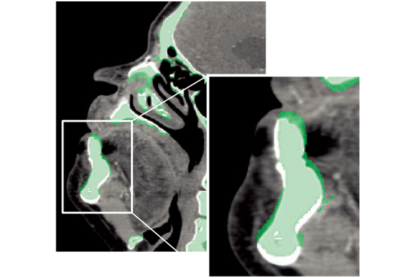 The captured scanogram image can be used to automatically set the scan range. This can be expected to be shorten the setting time. By using Fujifilm's automatic organ segmentation technology*7, which was developed utilizing deep learning, it contributes to the scan of a total of 14 types, including the head and chest. In addition, since the margin of the scan area can be set in advance, the scan area can be customized according to the operation of each facility. The operator can also check and adjust the automatically calculated scan area.