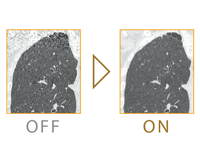Noise reduction strength can be selected from 7 levels. We provide high-quality images by reducing image noise and artifacts with an appropriate exposure dose according to the facility's operation policy.