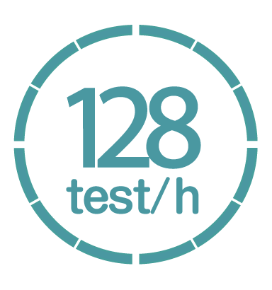128 tests can be processed per hour.
