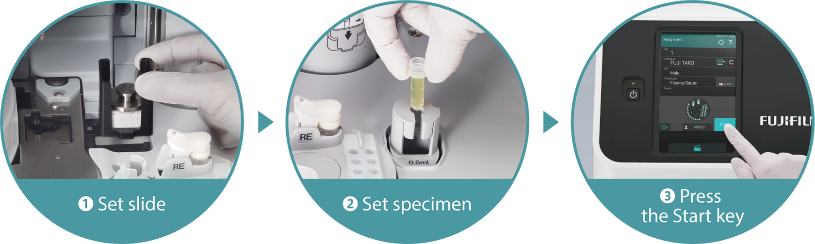 Set the slide and the specimen, then press the Start key.