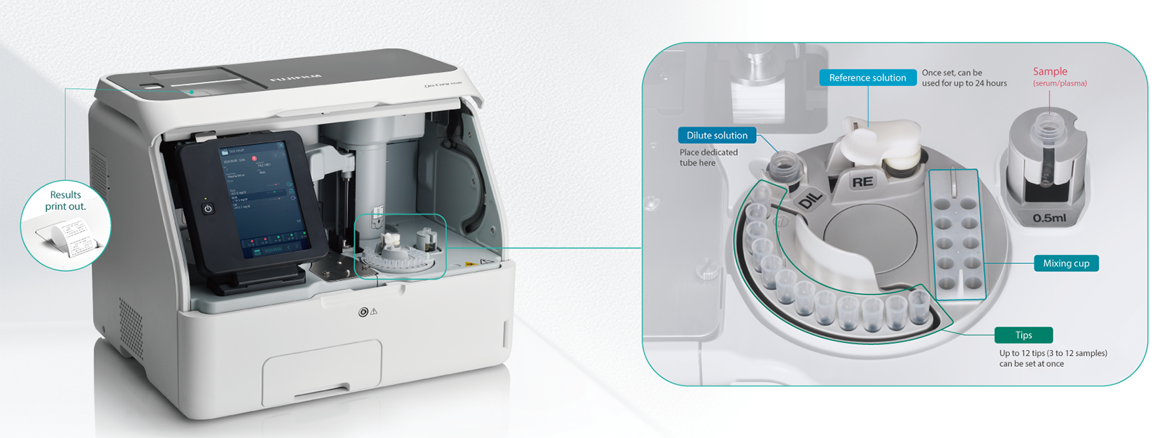 Slide reagents after measurement are automatically discarded to the disposal box, minimizing the risk of contamination.