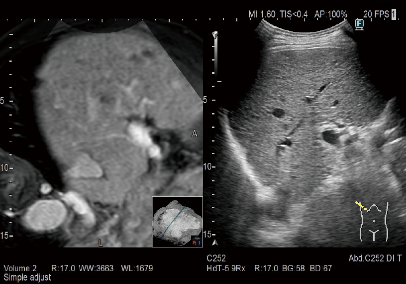 MPR images constructed from CT/MRI/PET-CT/US volume data can be synchronized to real-time ultrasound imaging. It is applied in a wide variety of clinical fields: such as for Abdomen, Breast, navigation in prostate puncture, and so on.