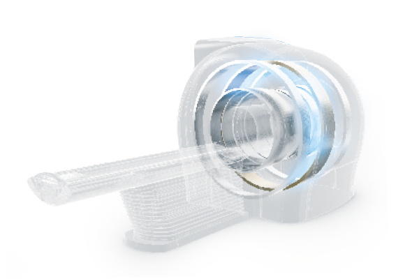 ZeroHelium is a 1.5T superconducting MRI technology that uses no liquid helium at all. The conventional cooling method is to immerse the coil in liquid helium, but ZeroHelium uses a dedicated cooling mechanism to maintain superconductivity at -269°C.