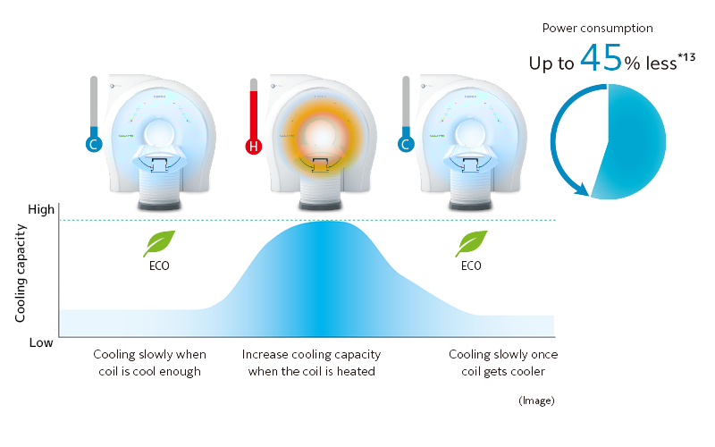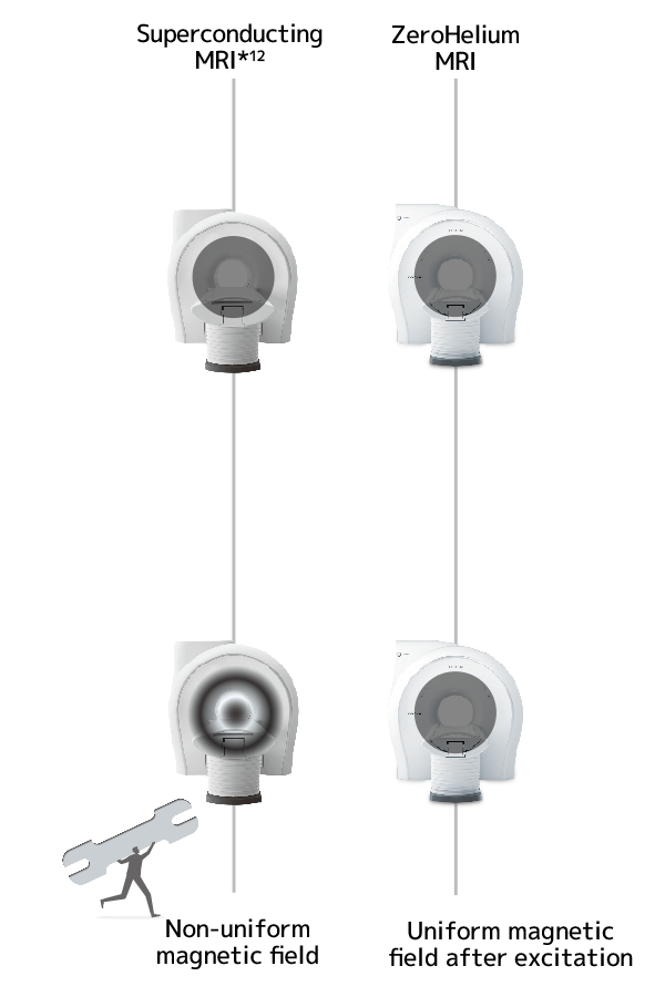 The ECHELON Smart ZeroHelium provides advanced magnetic field control with its ZeroHelium magnet and ZeroHelium technology. Therefore, after demagnetization and excitation, MRI examination can be performed without confirmation by service personnel*11.