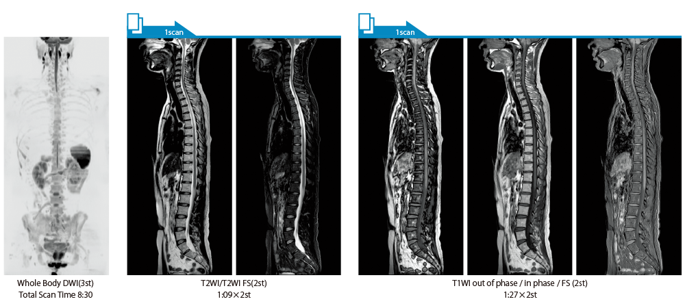 It can also be used with time-consuming scans such as Whole Body DWI and Whole Spine imaging, providing more detailed information in many areas than previously possible.