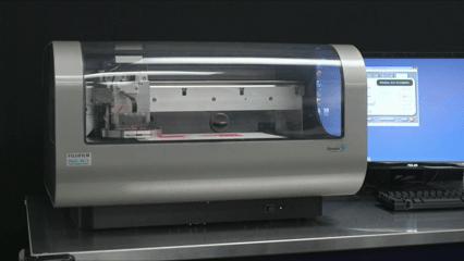 The most unique feature of this table top printing system is the printhead itself - a world first! FUJIFILM Dimatix has created a MEMS-based cartridge-style printhead that allows users to fill their own fluids and print immediately with the DMP in their own laboratory. To minimize waste of expensive fluids, each cartridge reservoir has a capacity of 1.5 ml. Cartridges can easily be replaced to facilitate printing of a series of fluids.