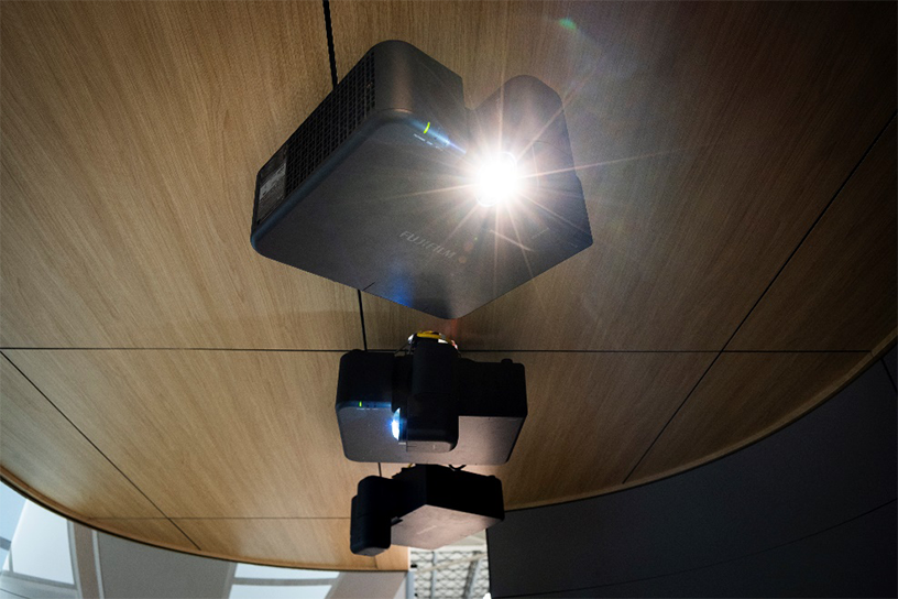Three FP-ZUH6000 projectors were used for portrait projection.