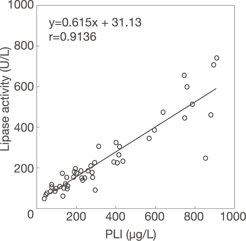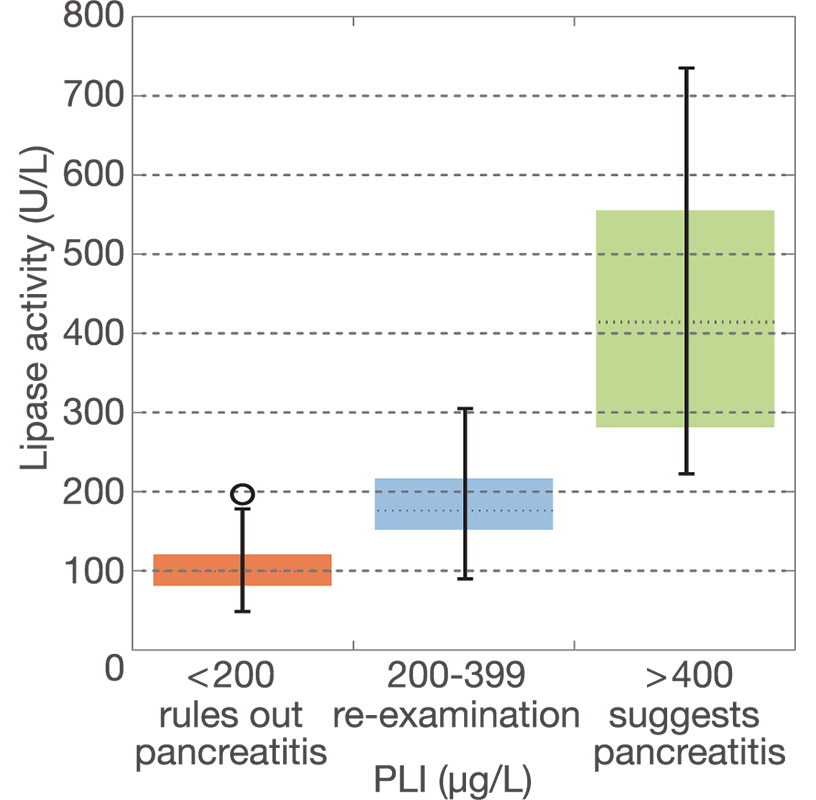 Lipase activity distribution classified by PLI diagnostic categories
