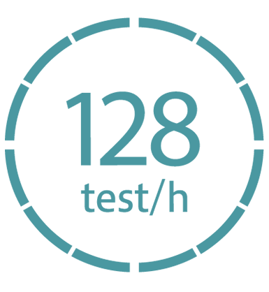 128 tests can be processed per hour.