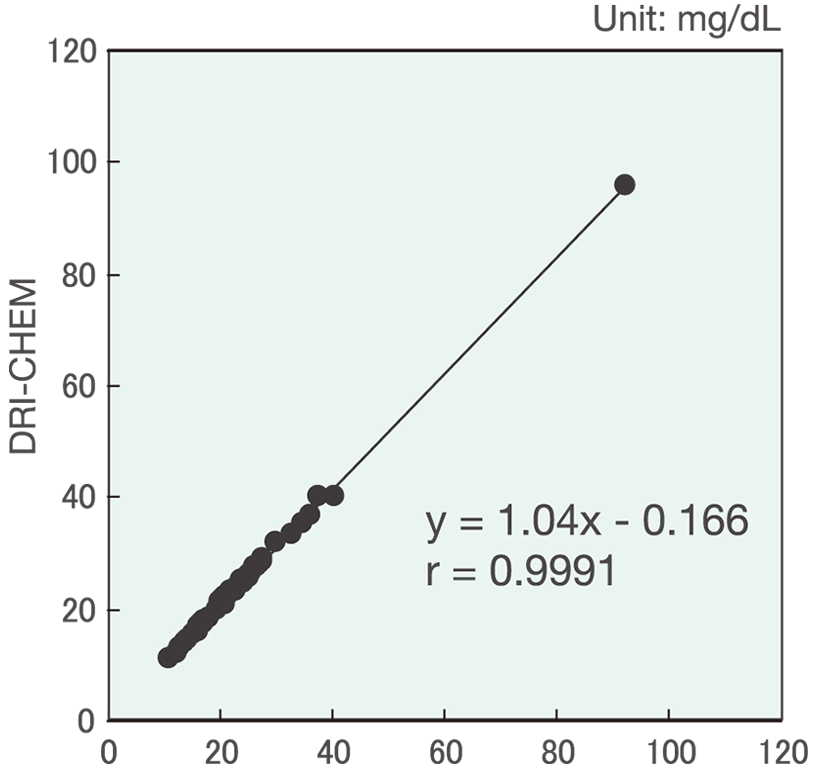 Fujifilm DRI-CHEM slides achieve an extremely high degree of precision thanks to a special filter layer that reliably filters out any substances that could interfere with the serum or plasma specimen. The high quality of Fujifilm reagents is demonstrated by a comparison with the standard measurement methods.