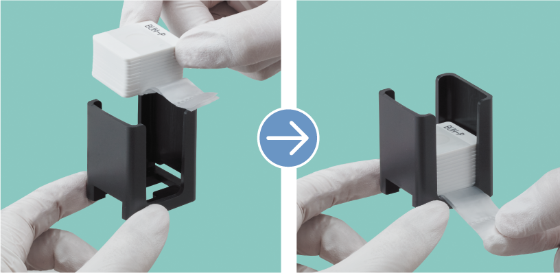 Simply place it in the slide cartridge and remove the binding tape