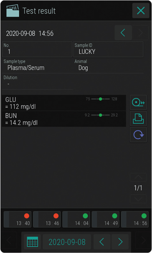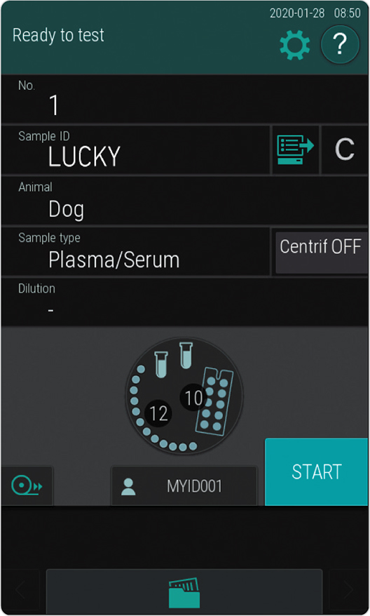 Only 10 μL of sample is required for each test. (CRP: 5μL/test, ISE: 50μL/test, dead volume is necessary using automatic measurement.) A very useful feature especially in small animals. If there is less sample, measurement can be done by manual pipetting.