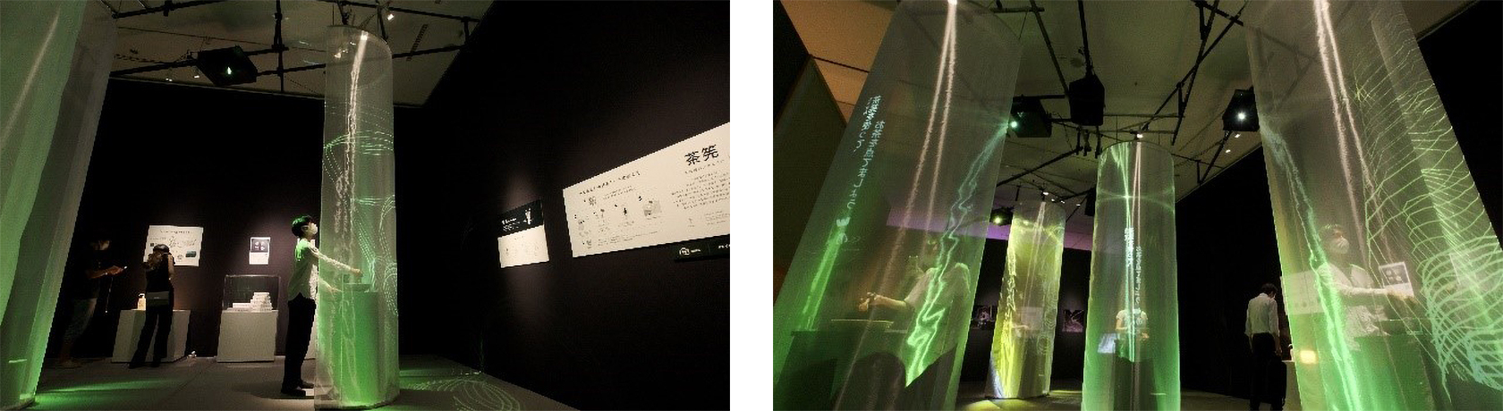 An exhibit that projects original images through the gestures of actually making tea. Even under difficult installation conditions, FP-Z8000 was able to easily project images.