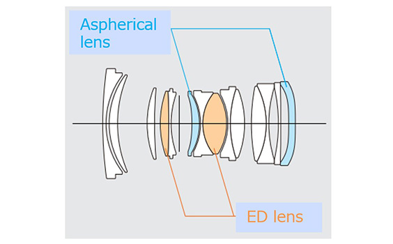 Consisting of 14 lens elements in 10 groups including two ED lenses and two aspherical lenses