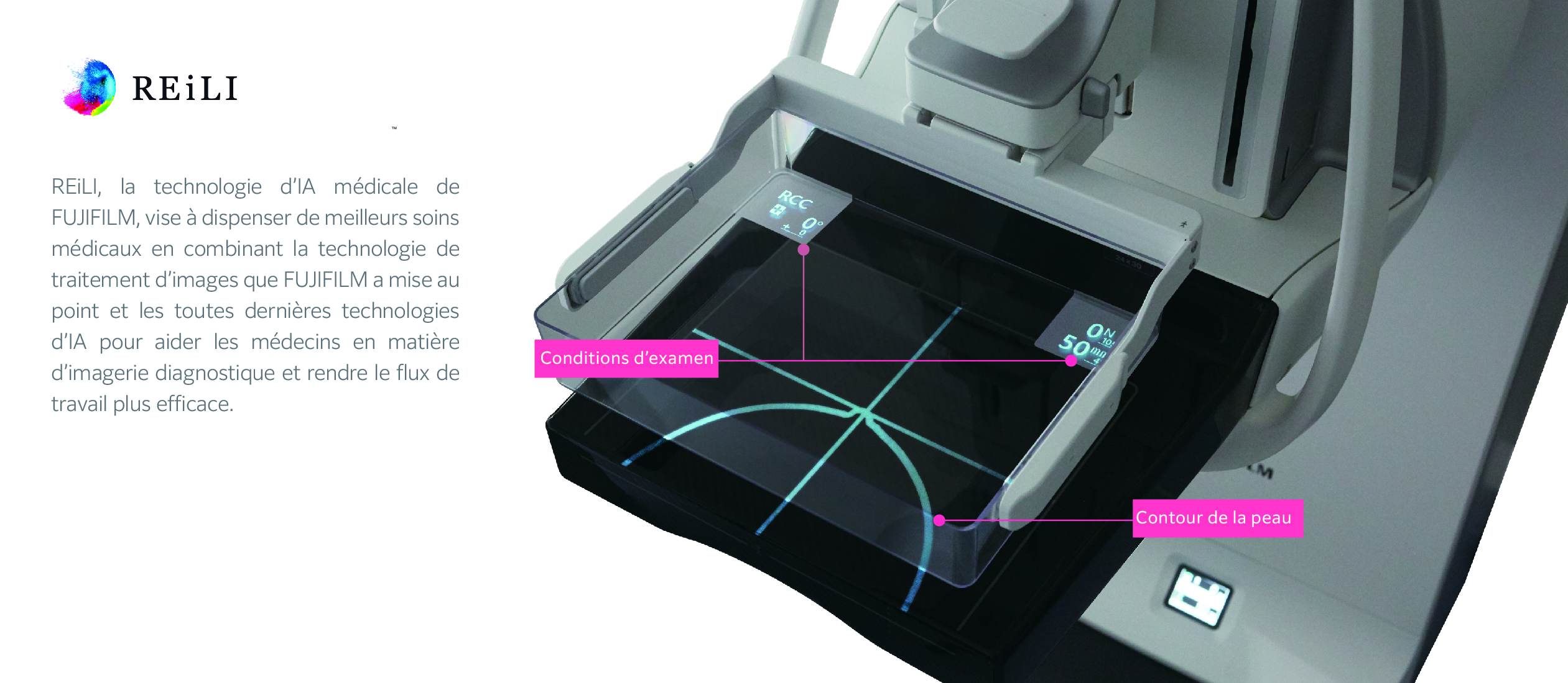 The position of the mammary gland in the Optional breast is analyzed from pre-shot images taken at a low dose. Only the mammary gland area is used, enabling imaging with appropriate technical factors and dose. Even breast implants, for which it is often difficult to determine the correct manual technique can be automatically imaged by identifying the area of the implant.