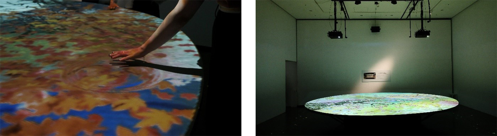 "Tsukubai" with an interactive projection onto a table surface five meters in diameter.