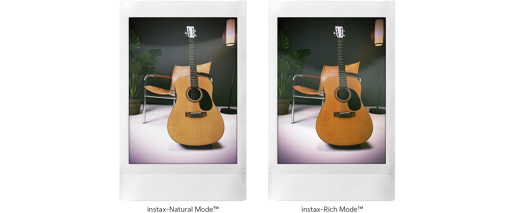 Also features “instax-Natural Mode™” for conventional image quality and “instax-Rich Mode™” for vibrant colors.Change how you express yourself in every image!